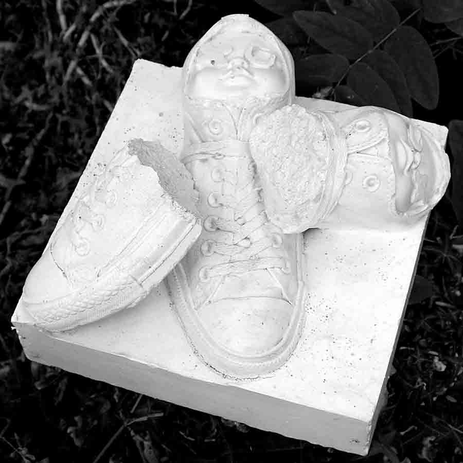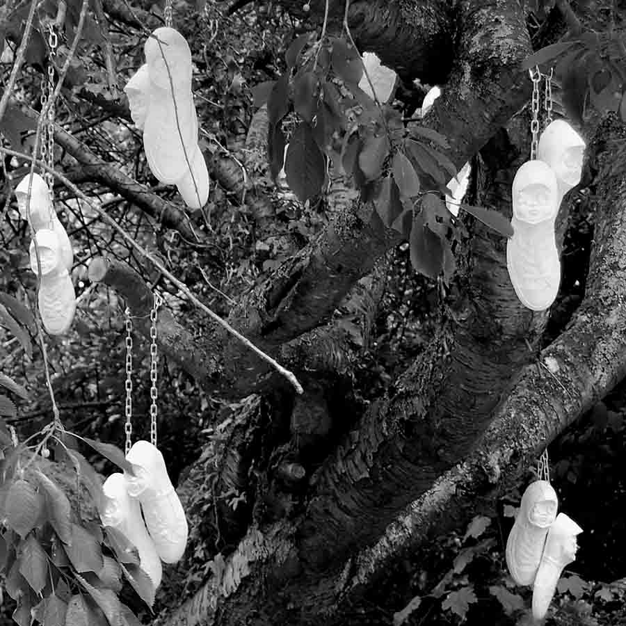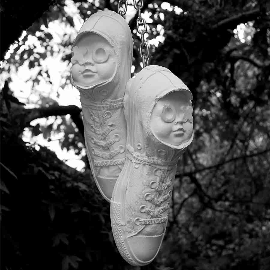 ‘Strange Fruits Of System Decay’ is a continuation of our series The Consumer Game but in this iteration cast in plaster and designed to weather and decompose. The Consumer Game explores issues surrounding the nature of aggressive consumerism, a global economy built on consumption and the effect this causes both to the individual and society.
