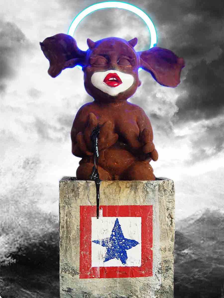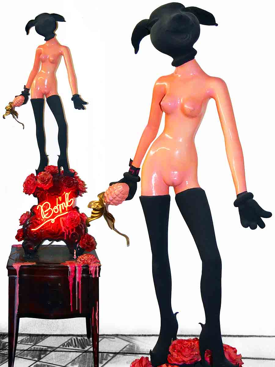 A short history of one of our signature sculptures from collage sketch, following several sculptural incarnations to the most recent being ‘Fleshbomb’