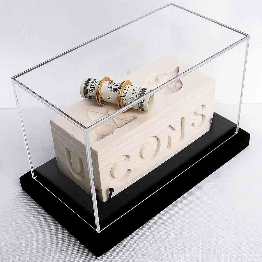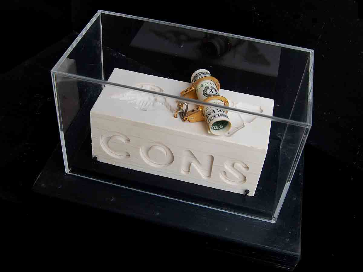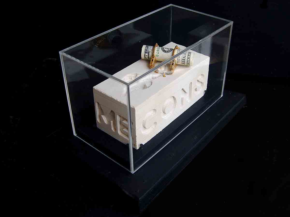 Created for inclusion in More Money by Jo-Anne Echevarria-Myers, a very special 50 page collaborative art ‘book’ of only 100 copies, featuring modifications to an American one dollar bill [defacement of currency is illegal in the states unless you are an artist and your intent is to make art], currently in the collections of Harvard University, The National Museum Of Women In The Arts, The University Of Pennsylvania, The Franklin Furnace Archive, School Of Visual Arts And Museum Of Modern Art (MOMA)