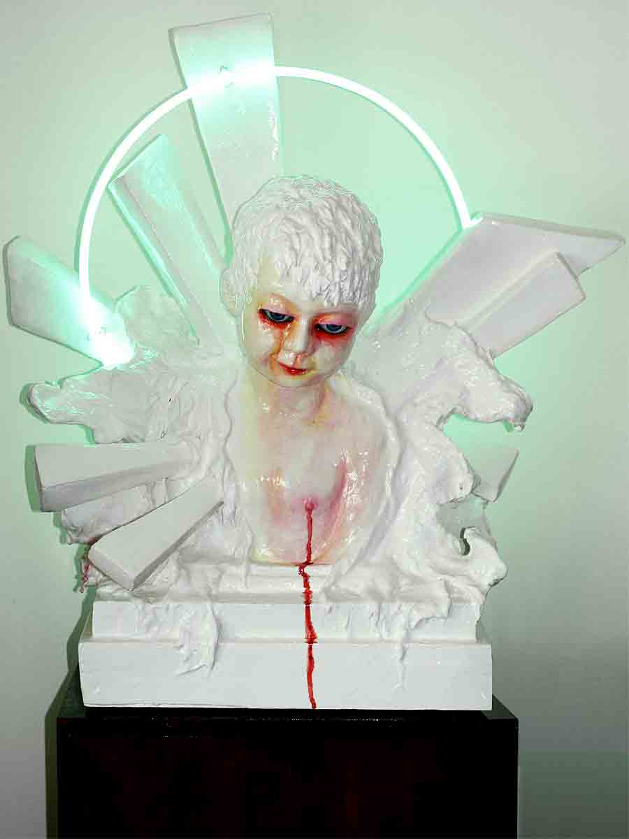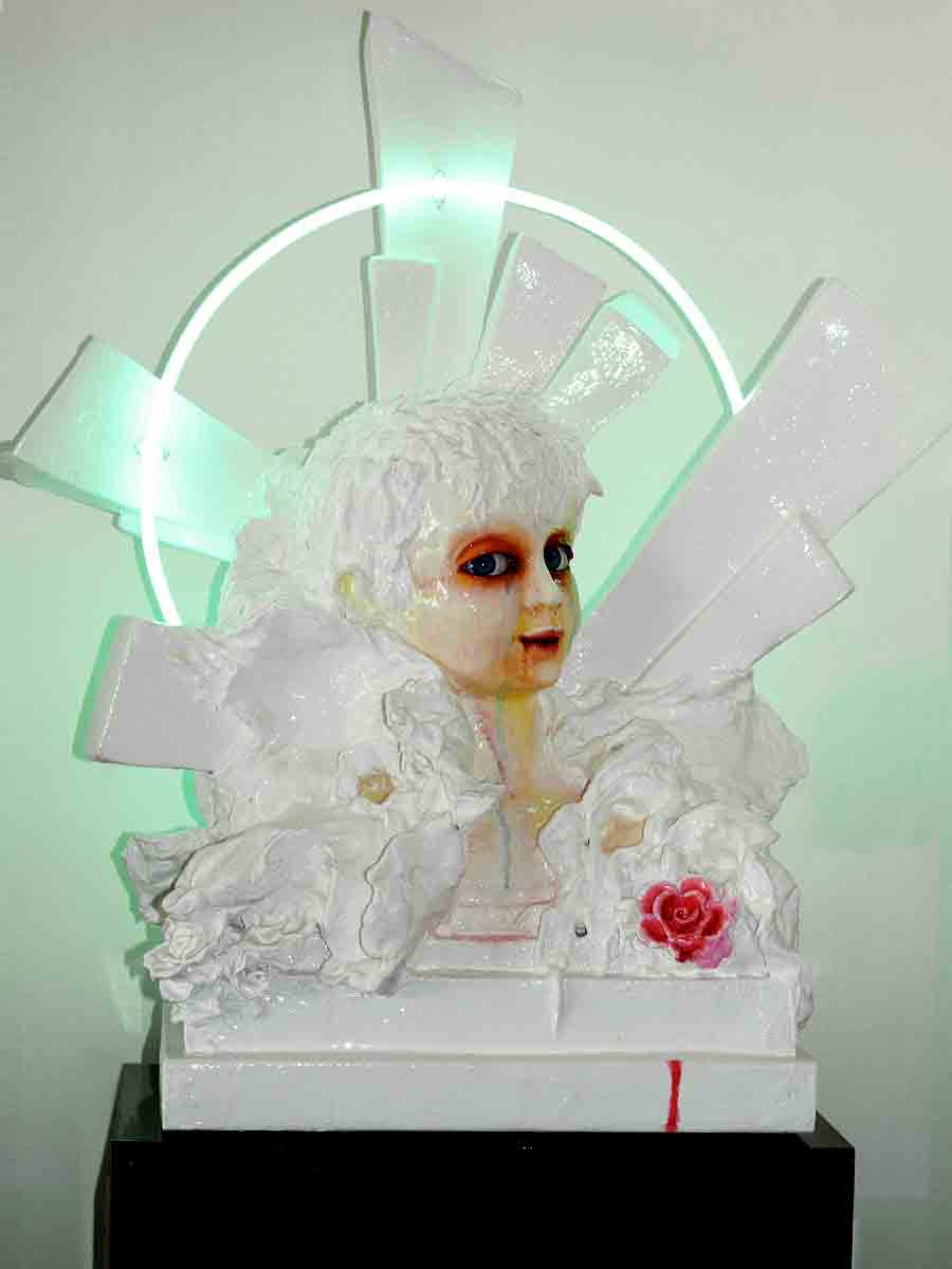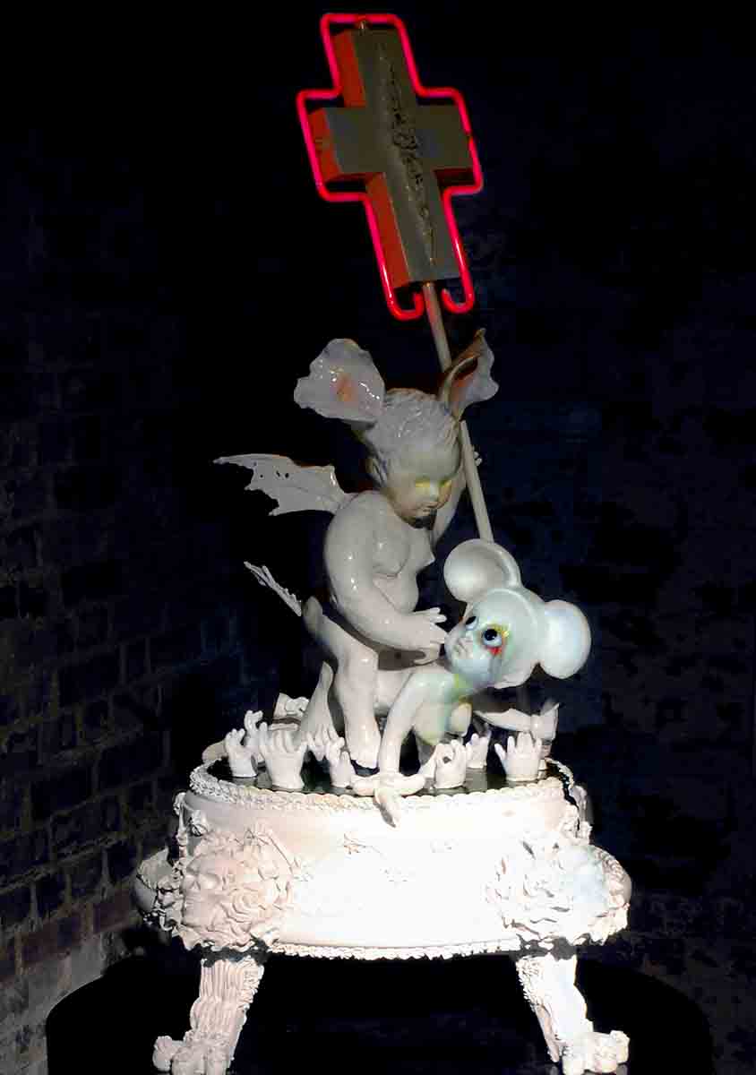Further works involving all our favourite things, neon, ‘homecraft’ cake decorating techniques, reclaimed and modified found objects, mould-making and casting, colour and light. Complex craftsmanship and the use of multiple materials covering infinitely more complex thematic areas of Life, Love, Sex, Politics, Comedy, Tragedy and the Stuff we’re all made of, Flesh, Heart and Soul.