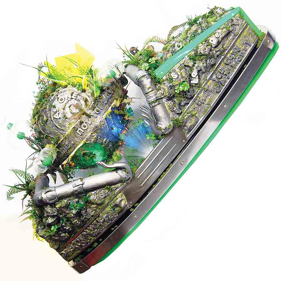 Bumper Car One: A consumptive economy reveals itself to be the most basic, the only ‘economy’ of a global market…CONSUME…resources, stuff and more stuff, more more more, take, take…+ Bumper Car Two: When the last tree is cut down, the last fish eaten, the last stream poisoned, only then will you realise that you can’t eat money.