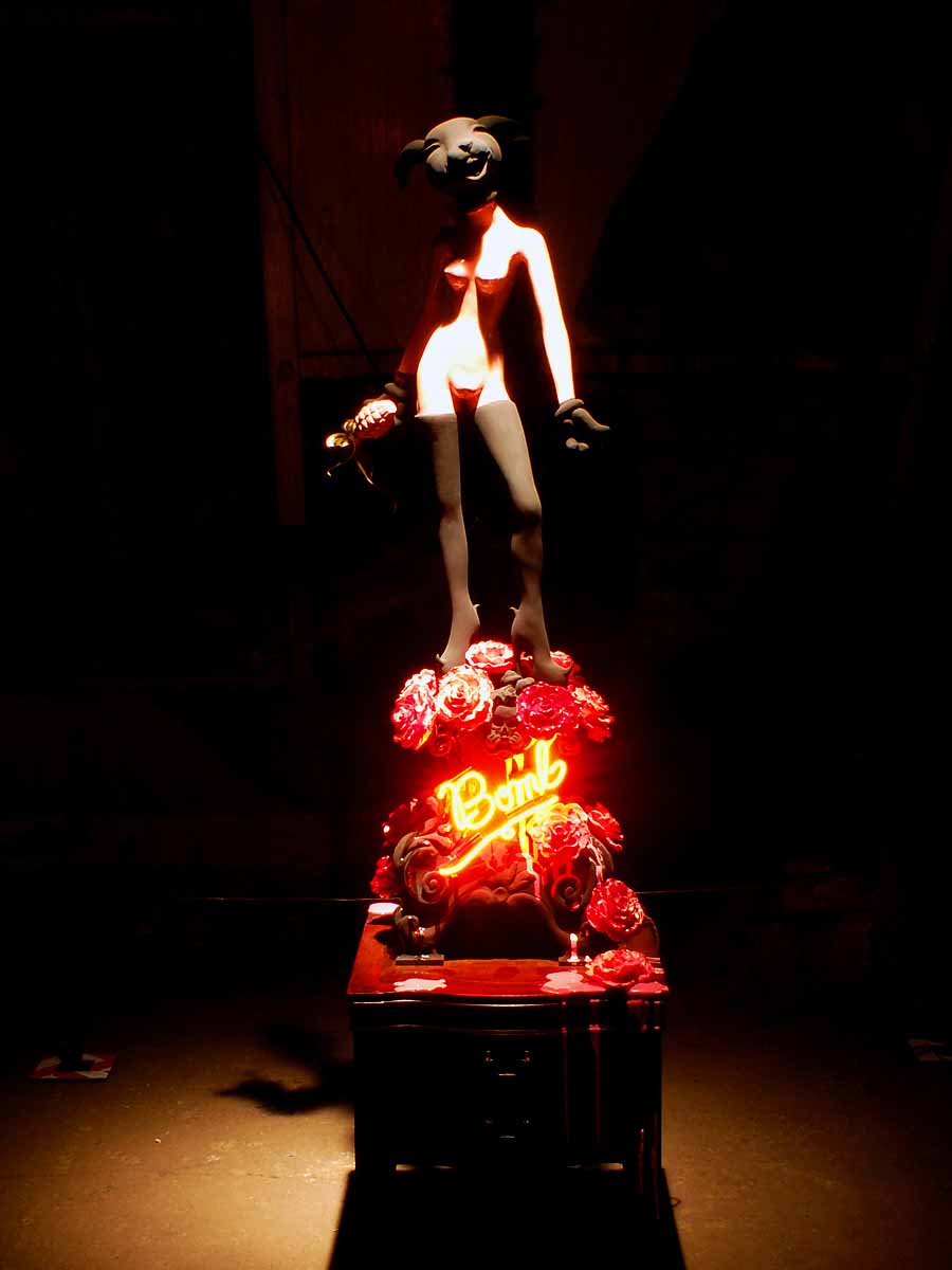 A selection of works integrating combinations of neon, light or motion; elements featured throughout the decades as indicators of levity, ecstasy and born of our love of the underbelly of city life, fairgrounds and theatre.