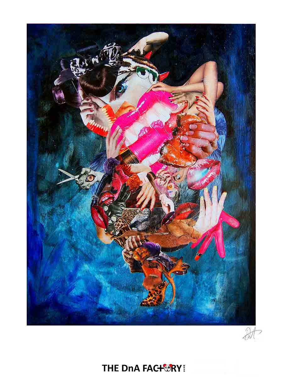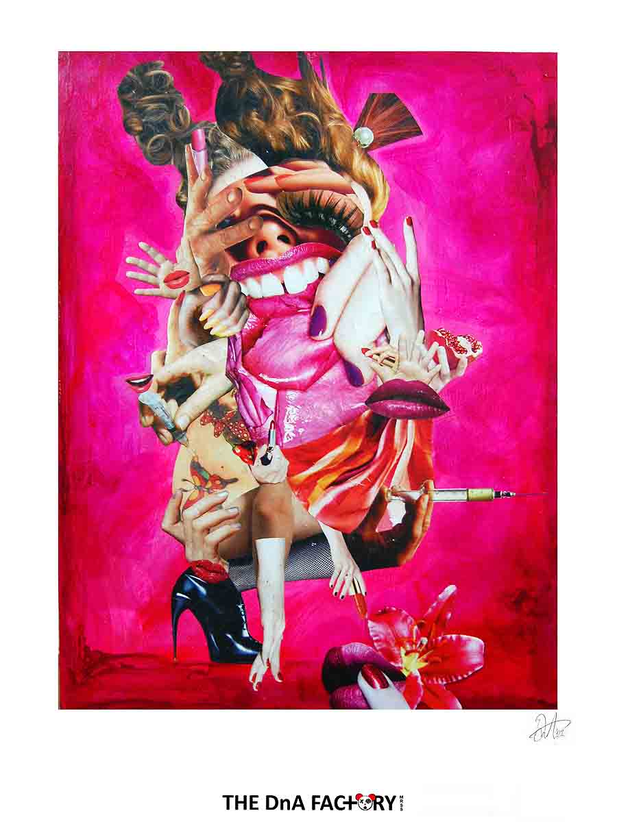 Two members of a series of large paper collaged work commenting on the world of fashion